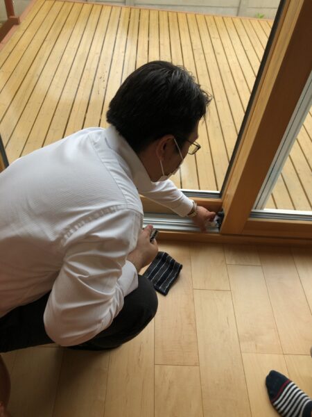 見たといっても、窓枠やドアを外したりということはありません。窓の開閉やサッシの周囲を見たりという感じでした。